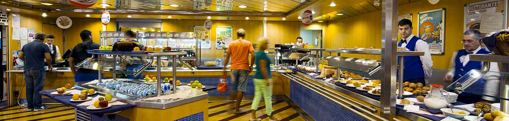 Cafétéria À bord de nos navires, vous pouvez profiter d'un excellent service de cafétéria, idéal pour le petit-déjeuner, les pauses café et les apéritifs. Plus de détails sur le service