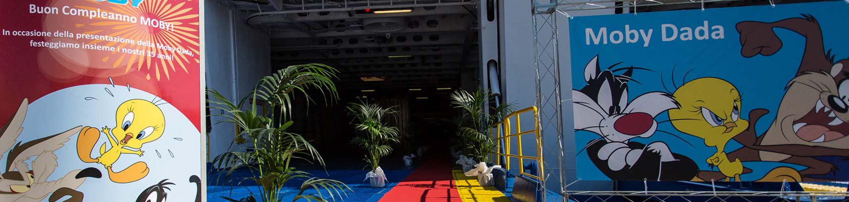 On les reconnaît de loin dans les ports de Nice ou Bastia : tous les bateaux exploités en France par sur leurs flancs, d’immenses personnages des Looney Tunes. Ils donnent le ton : avec MOBY LINES, les voyages sont détendus et ludiques !